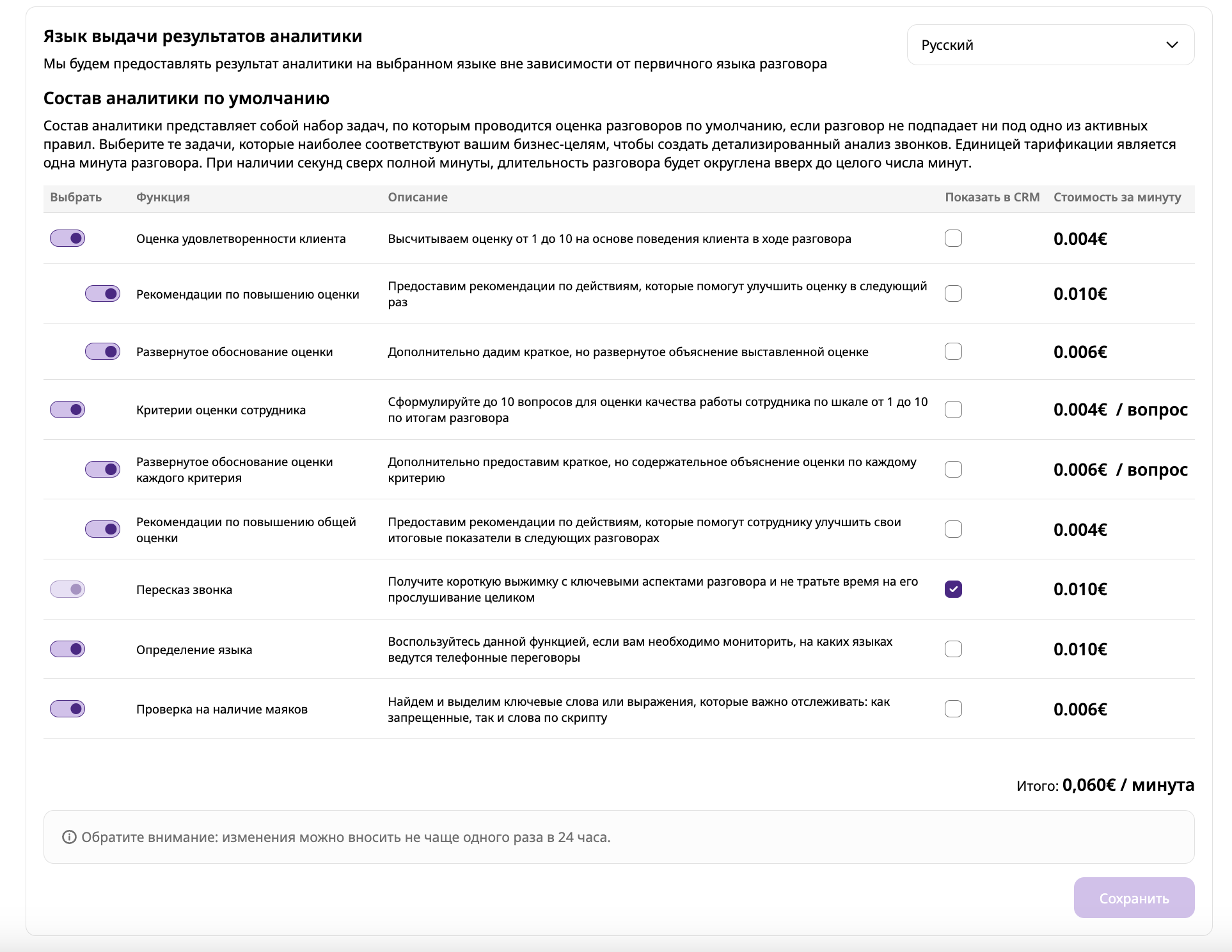 Вне зависимости от языка/ов, на которых собеседники общались во время разговора, вы можете настроить язык, на котором мы будем предоставлять результаты аналитики.